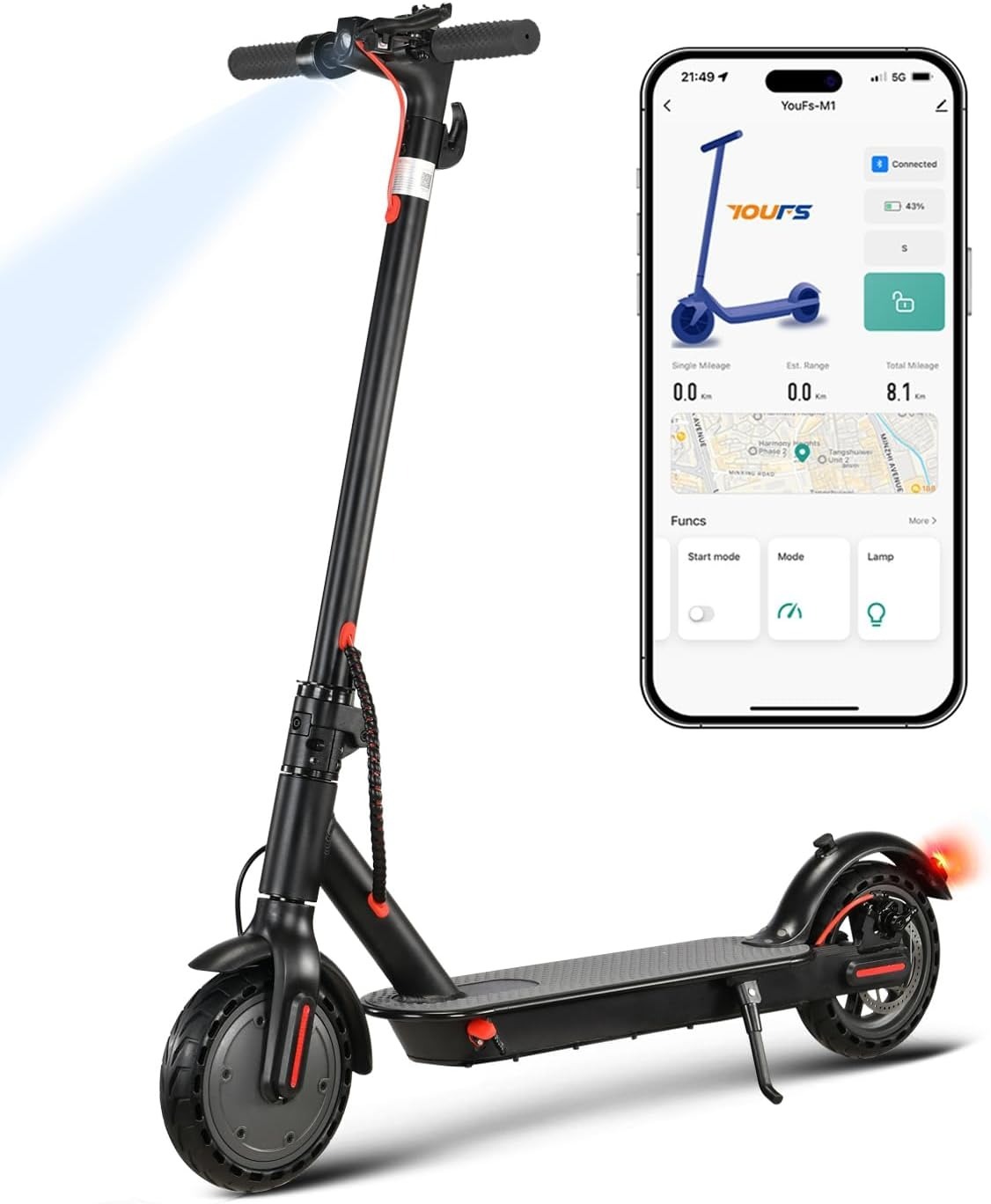 Sicherheit & Ausstattung: Straßenzulassung, App und LED-Licht.