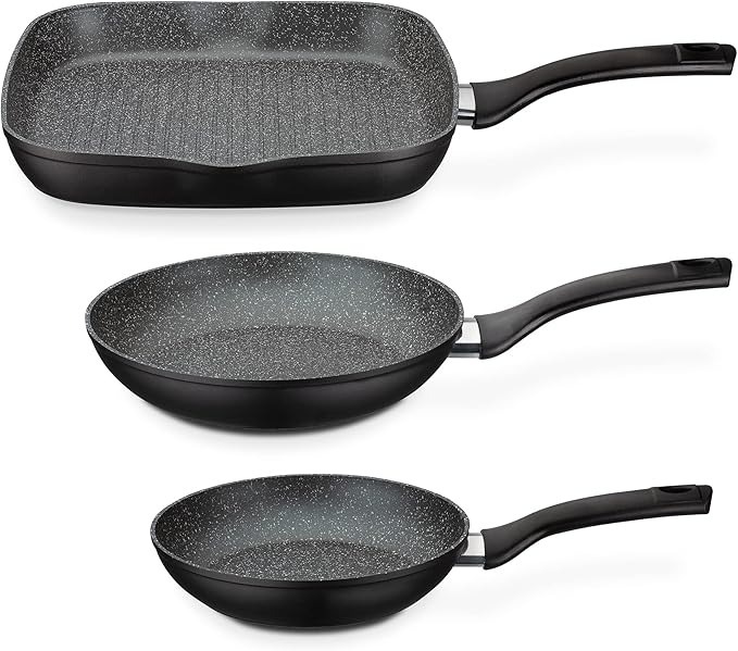 Material und Verarbeitung: Aluminium mit Stein-AntihaftbeschichtungAnzahl und Zusammensetzung der Teile: Insgesamt 8 Teile