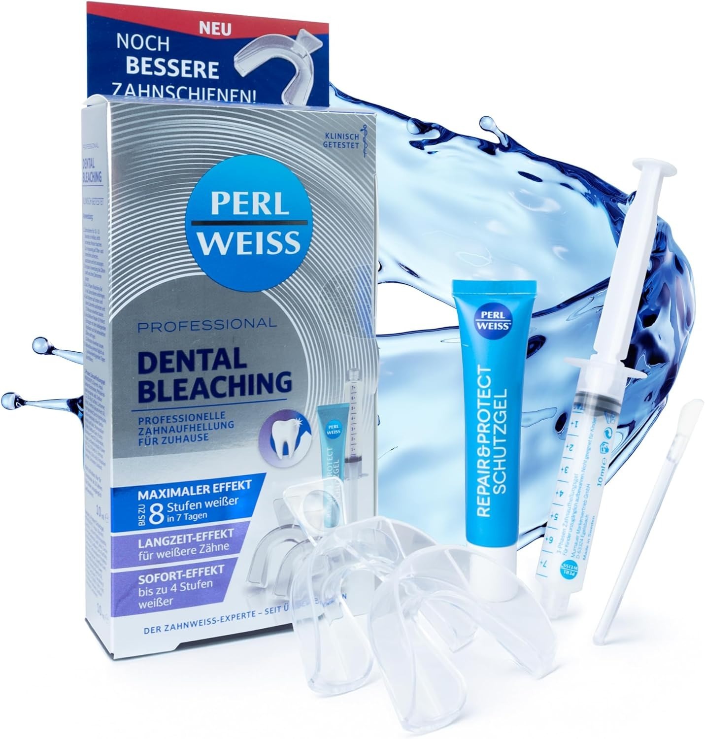 Wirkstoff & Technologie: Innovative, schonende 3-Phasen-Bleaching-Formel.Anwendungsform & Anwendungskomfort: Bietet individuell anpassbare Zahnschienen.